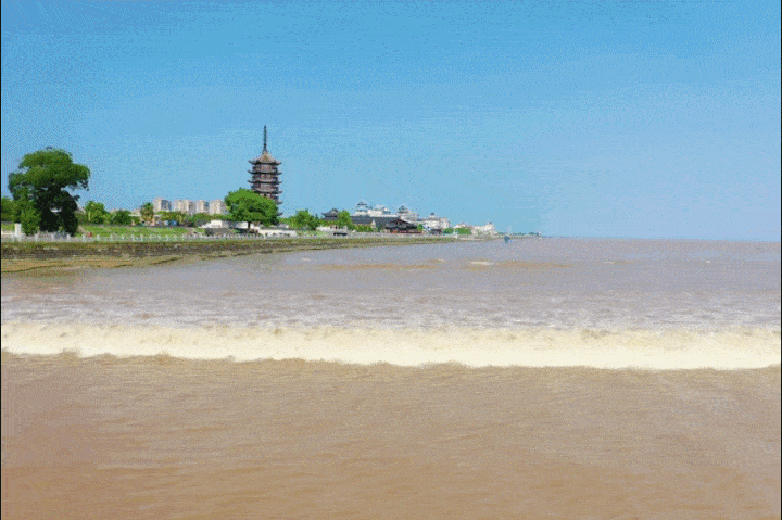 除了丰富的人文景观,盐官古镇还有一个天下奇观——钱塘江大潮。每年农历八月十八日,大潮来临之际,但见远方天边一条银线汹涌而来,其声似万马奔腾,其势如排山倒海,万马奔腾,洪流滚滚,摧枯拉朽,感受到大自然的神奇。