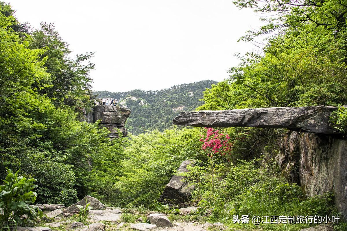 位于锦绣谷入口处不远,庐山景区中知名自然景观,有两块巨石组成,拍得好不好看主要取决于拍摄角度,相传朱元璋兵败逃到庐山此处,在追兵即将追上之时此处突然出现一座天桥,朱元璋绝处逢生,化险为夷。
