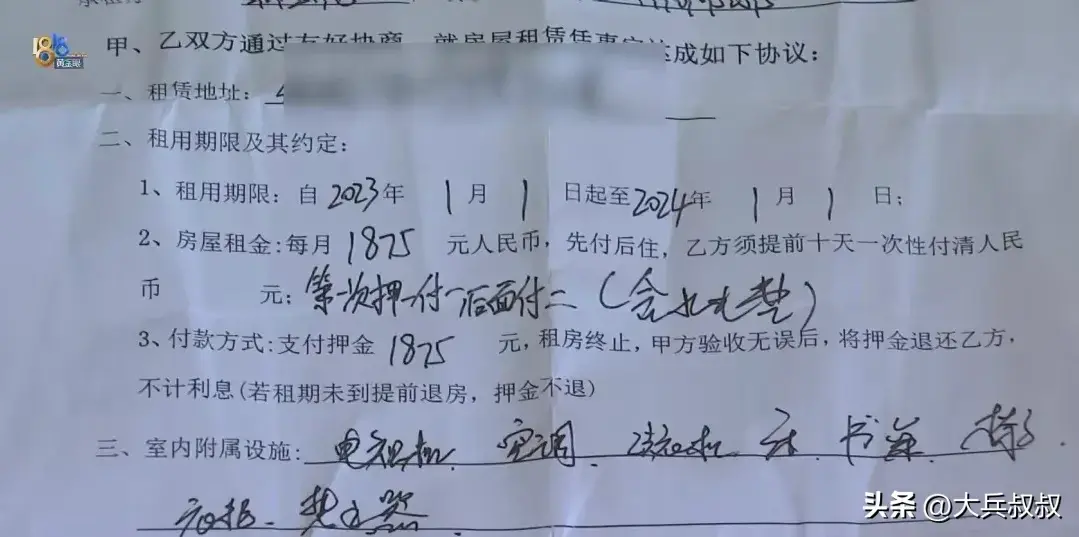 张女士和男友在当地一个小区租了一套房子,房子是一名女士的,双方谈好了租金一个月1875元,押一付一,随后就签订了租房合同租了一年,在交了一个月的租金和押金之后,第二天早上,房门被敲开了。