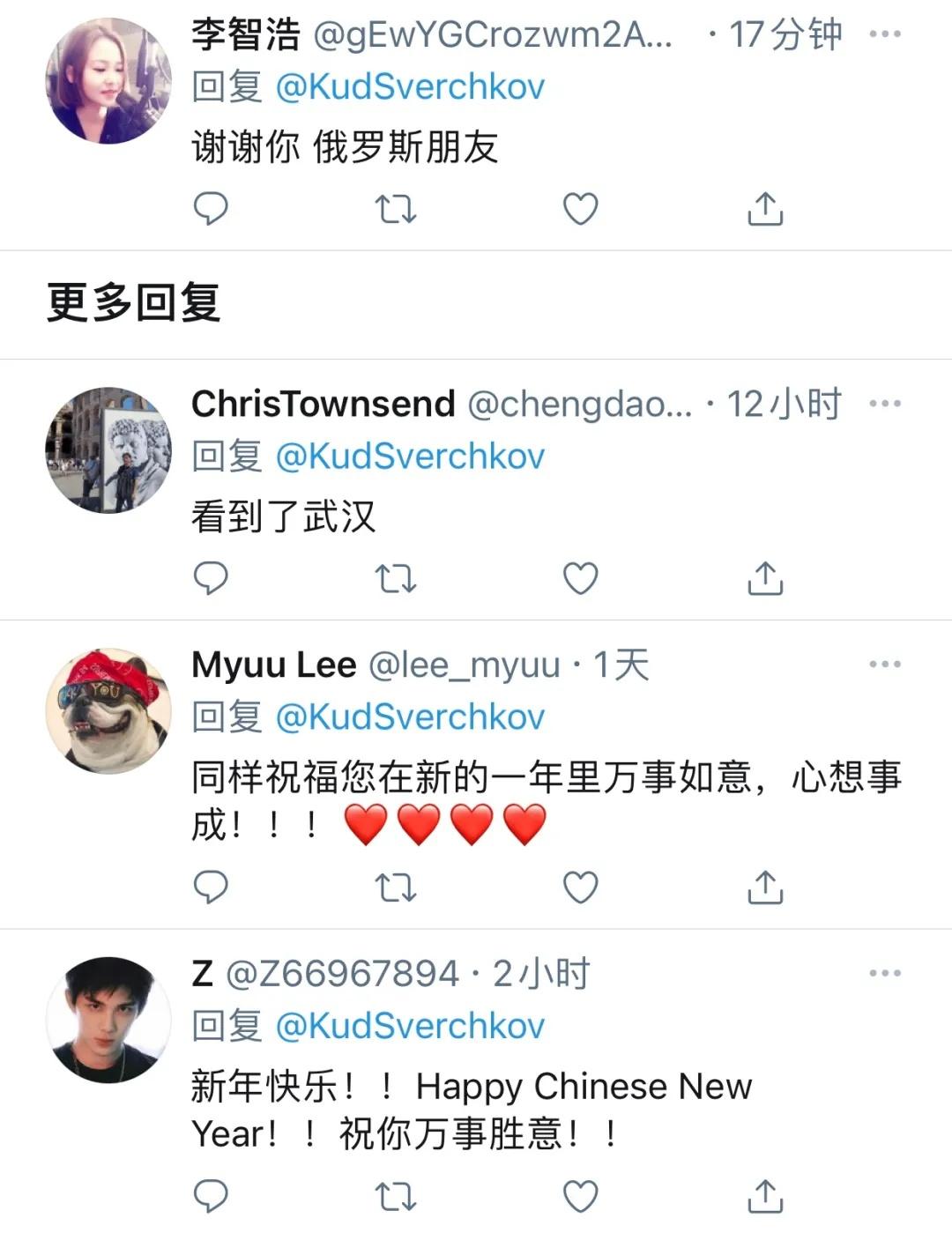 在推文的评论区,有中文、英文、俄文等多国语言留言。有网友表示“看到武汉的家了”“谢谢你 俄罗斯朋友”。